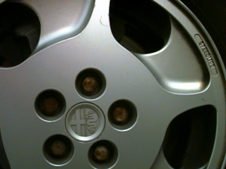 Closeup of the "S" wheel. Didn't come out quite like I intended (it's hard to tell what the actual field of view is in a closeup shot with a QuickCam, I've discovered), but I really like the way the wheels look, so I included it. Anyone know why the nuts rust so fast?