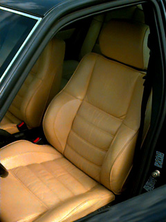 See that red stitching? That's how you know you're in an "S." See that thing hanging down in front of the clutch pedal? That's how you know it's time to fix your driver's-side floor light (yes, they really put lights down there).